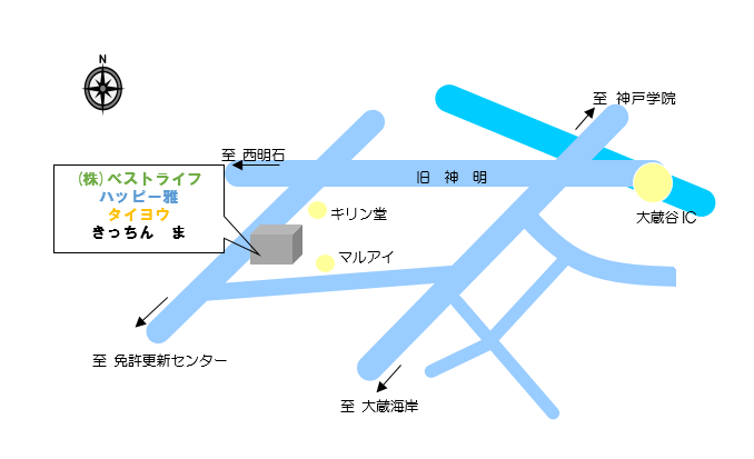 【お車で来られる方】三宮方面 第二神明道路「大蔵谷インター」から3分姫路方面 第二神明道路「大蔵谷インター」から3分